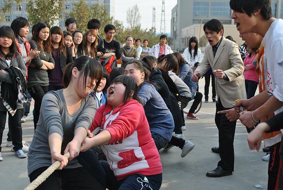为丰富校园文化生活,增强同学们进行体育锻炼的意识,培养同学们的团队精神,提高班级凝聚力,校团委于2011年3月21日至4月7日举办了春季拔河比赛活动,在校的2009级、2010级共14个班级参赛。